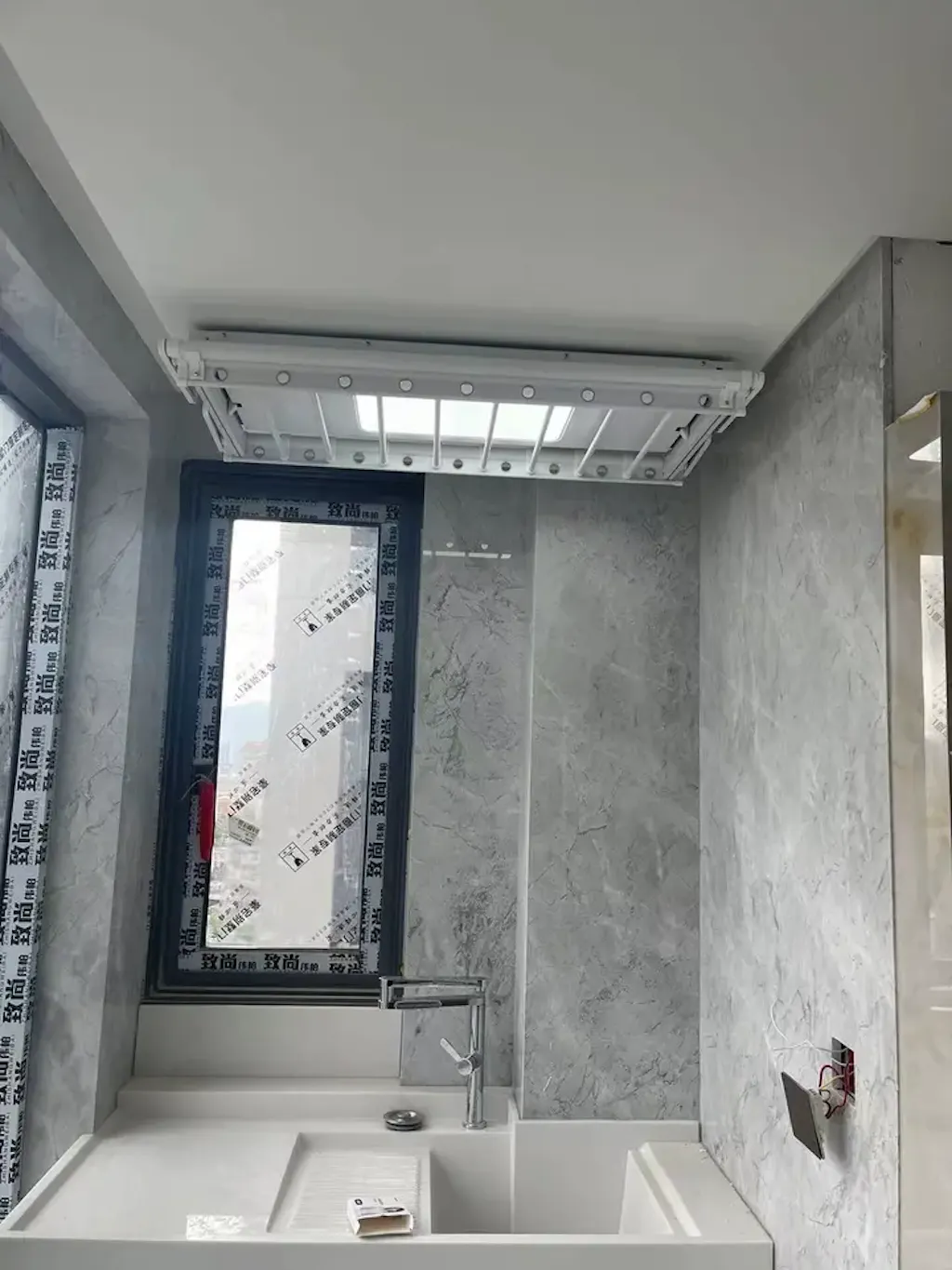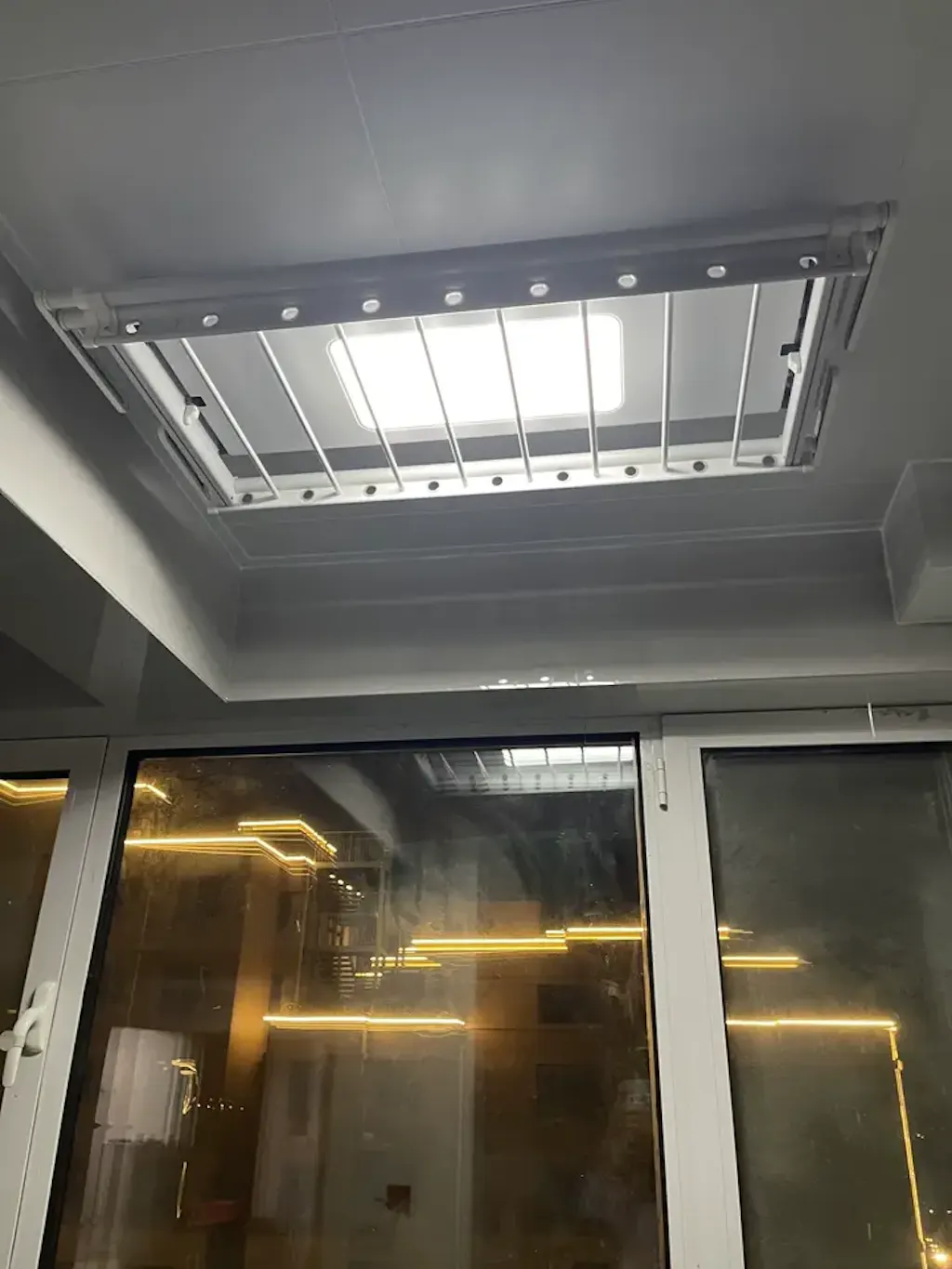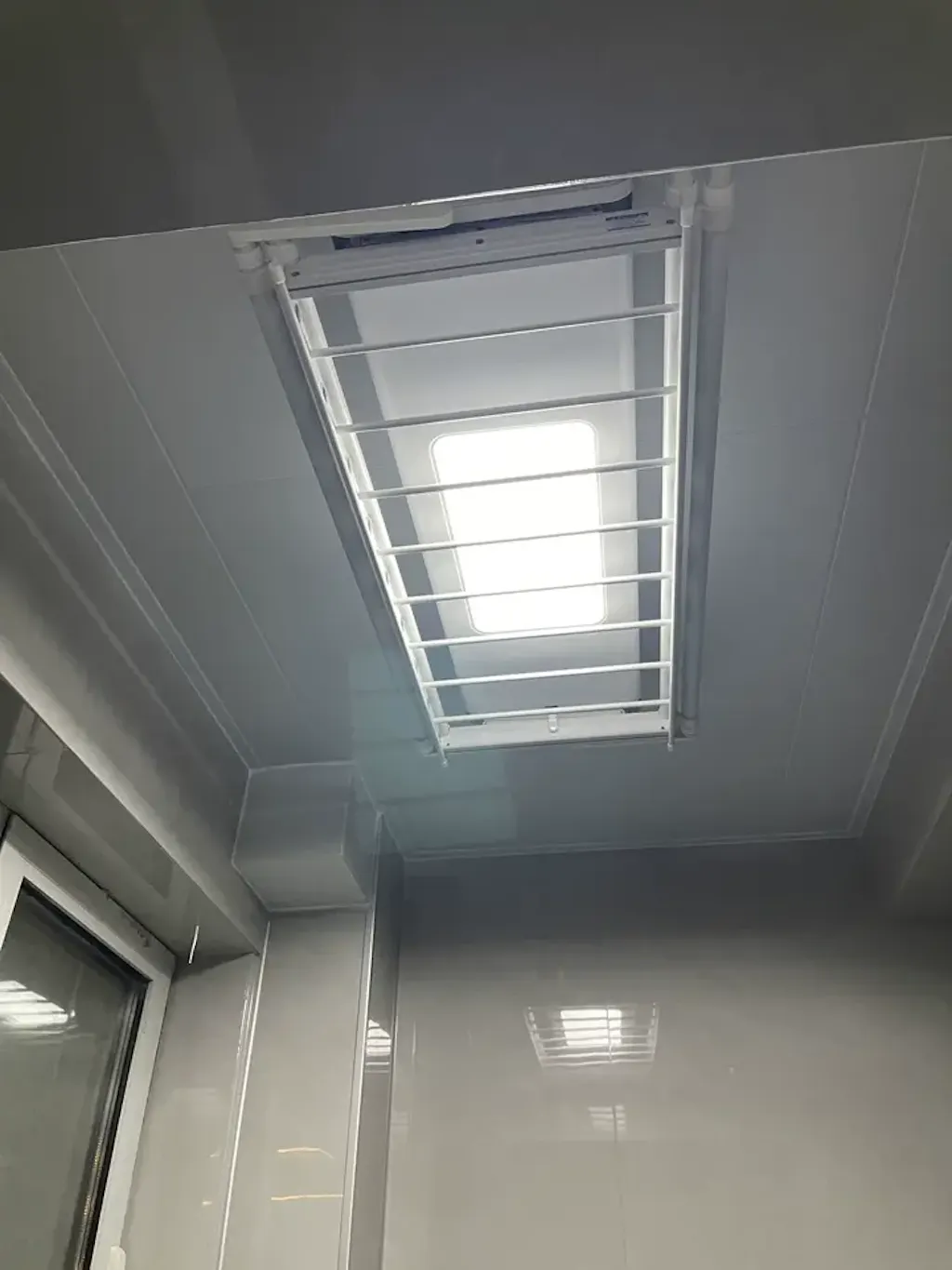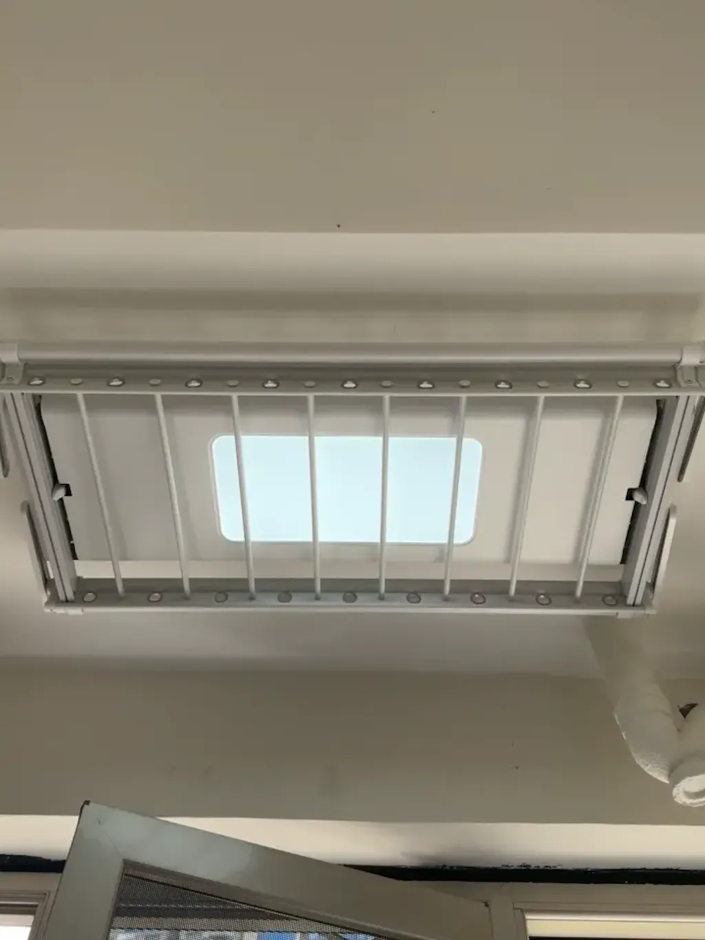 Tendedero de ropa EaseRack Pro instalado en el techo del solárium, lo que garantiza una exposición total al sol para un secado más rápido.