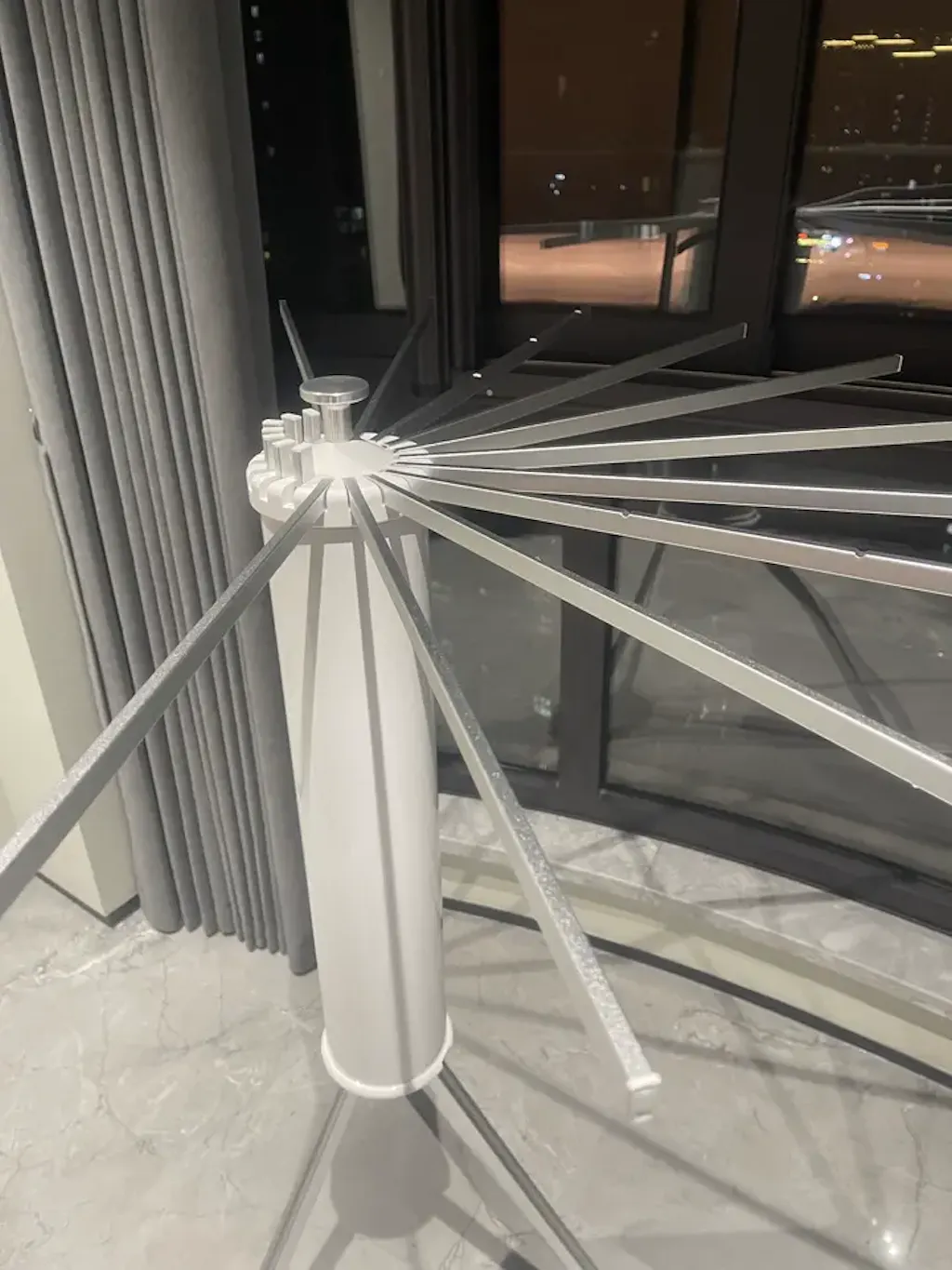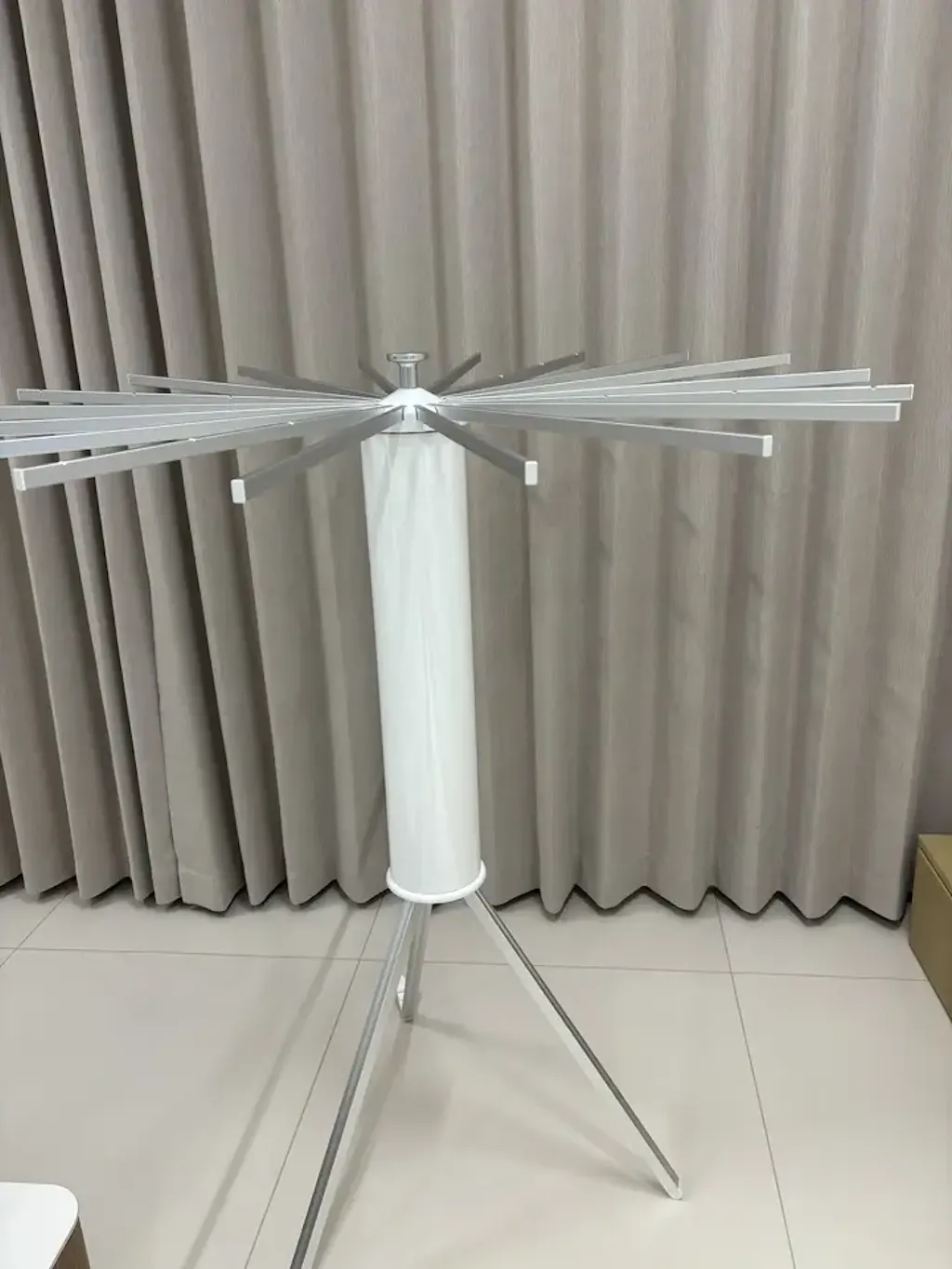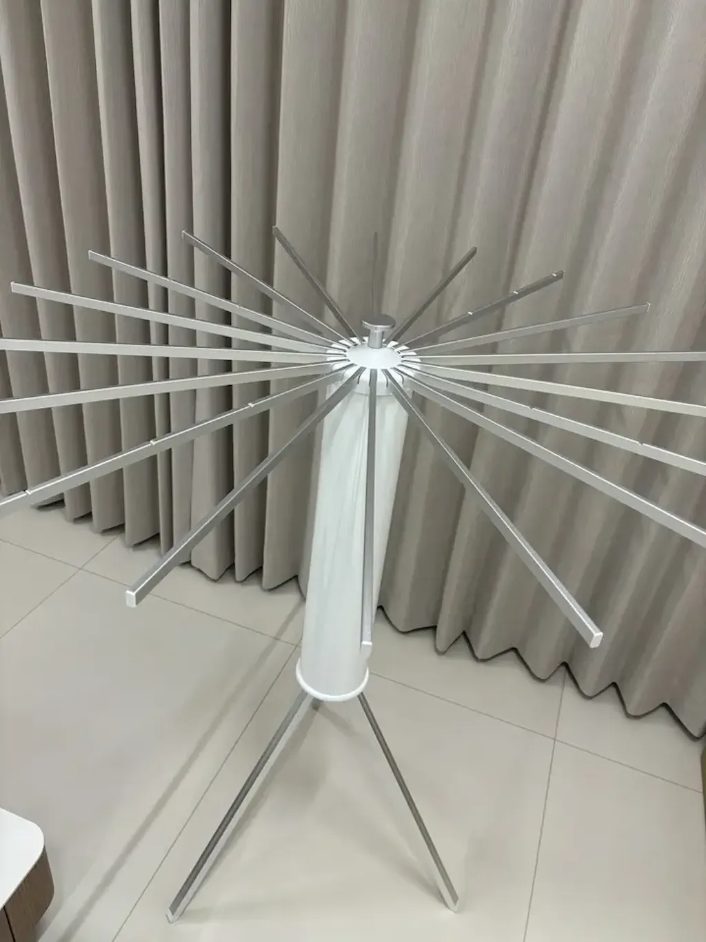 This floor drying rack uses a triangular-style support layout designed to help improve balance while staying easy to move and store. Reinforced joints are built for everyday use when the rack is set up correctly on a flat surface and used within the rated load. Stability can vary depending on floor conditions, setup, and how weight is distributed.