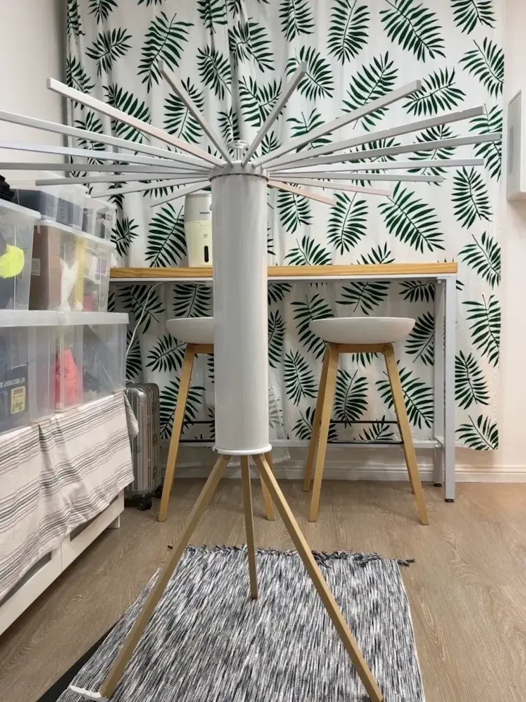 With a simple upward pull, the EaseRack drying rack opens for everyday use. When folded, it becomes compact for convenient storage in a corner, closet, or laundry area—helping reduce visual clutter and floor use. Folded thickness is about 17 cm (may vary slightly depending on placement and measurement method).