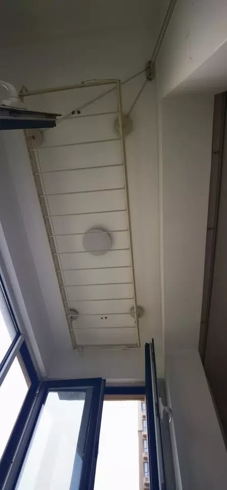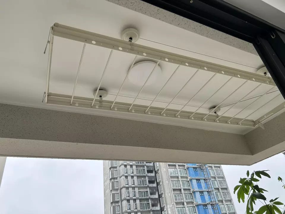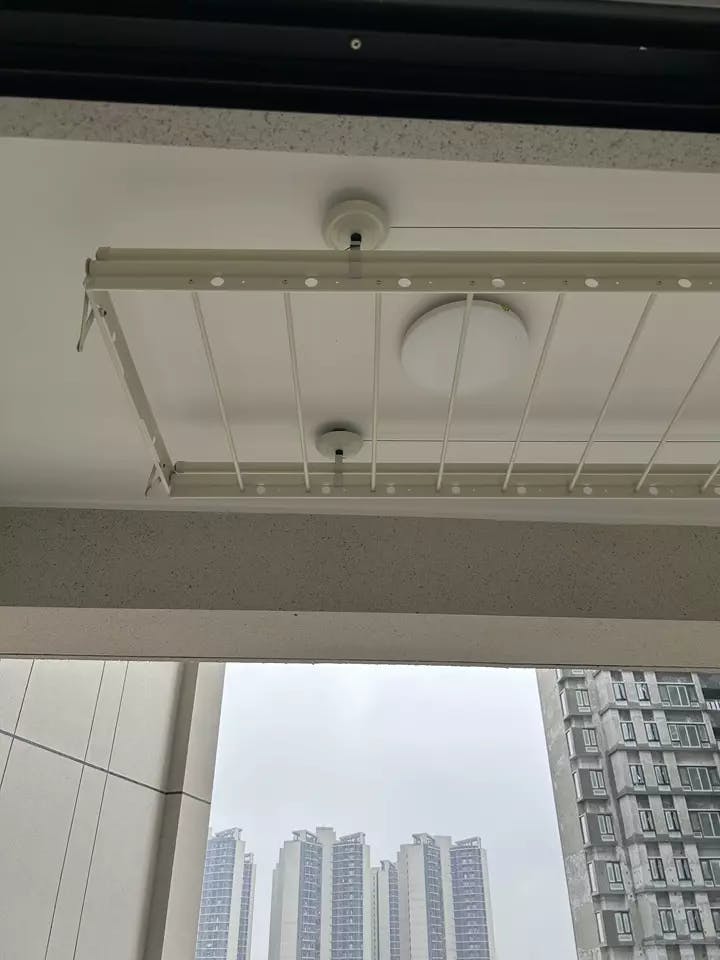 The clothes drying rack can be installed on various types of balcony ceilings, including suspended ceilings, old ceilings, thermal insulation walls, and more. Installation requires a minimum balcony width of 90cm. Professional installation service is available upon request, or customers can follow the provided manual for DIY installation.