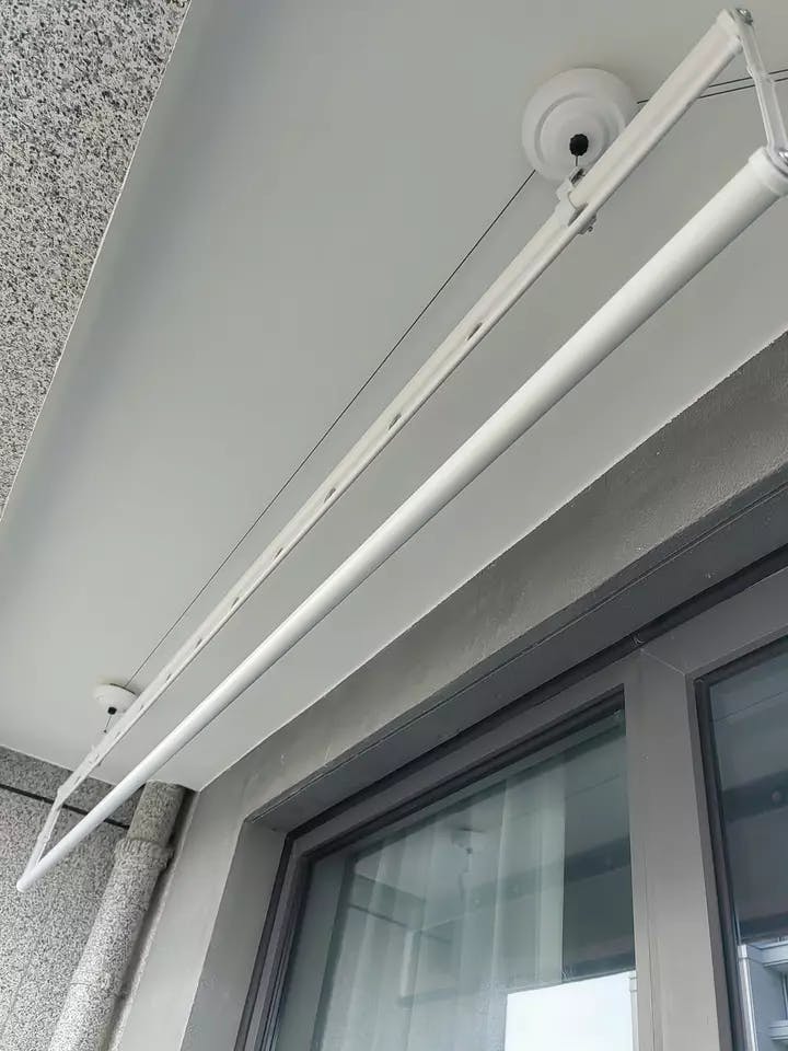 The clothes drying rack can be installed on various types of balcony ceilings, including suspended ceilings, old ceilings, thermal insulation walls, and more. Installation requires a minimum balcony width of 90cm. Professional installation service is available upon request, or customers can follow the provided manual for DIY installation.